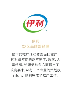 i-d先后經(jīng)歷與Audi、Mercedes-Benz、infiniti、PORSCHE、可口可樂、麥當(dāng)勞、肯德基、Budweiser、華為、小米、中國移動、ELLE、L'OREAL、萬達(dá)、仁恒置地、恒大、碧桂園、蘭桂坊...的業(yè)務(wù)合作,成功地將國際化的營銷策劃理念及執(zhí)行方式融入本土,為更多的中國企業(yè)開啟全新的品牌推廣思路和執(zhí)行方案。